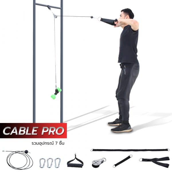 Cable Pro สายเคเบิลออกกำลังกาย แบบพกพา ติดตั้งง่าย พกพาสะดวก เปลี่ยนทุกที่ให้เป็นยิม อุปกรณ์ในเซ็ต 7 รายการ สายเคเบิลยาว 2.5 เมตร ใช้เล่น หลัง แขน ท้องคู่กับอุปกรณ์เสริมต่างๆ ได้ตามต้องการ