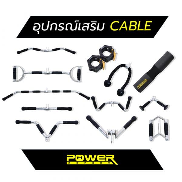 | เลือกสินค้า | ที่รองคอยกบาร์เบล Barbell Shoulder Pad – แบบ Standard, ที่รองคอยกบาร์เบล Barbell Shoulder Pad – แบบ Premium Power Reform, Jaw Lock 2 อัน (1 คู่), Deluxe Triceps Press Down V-Bar, Multi Exercise Bar, Pro Grip Lat Bar 26", Revolving Curl Bar 28", Revolving Press Down Bar, Revolving Straight Bar 20", Revolving Lat Bar 48", Triceps Press Down V-Bar, Triceps Rope, V-Grip |