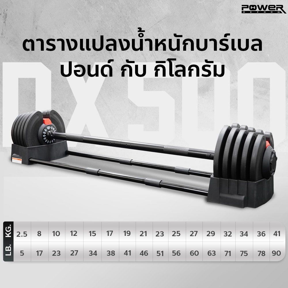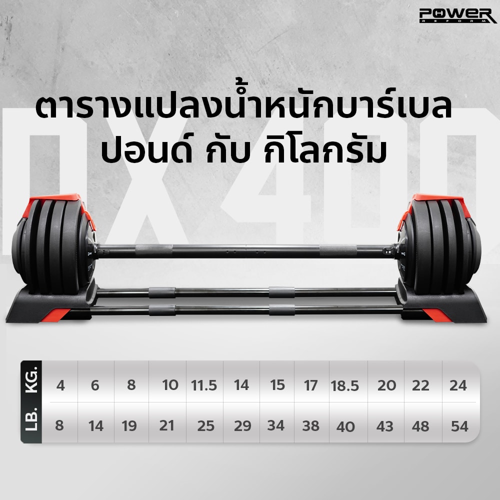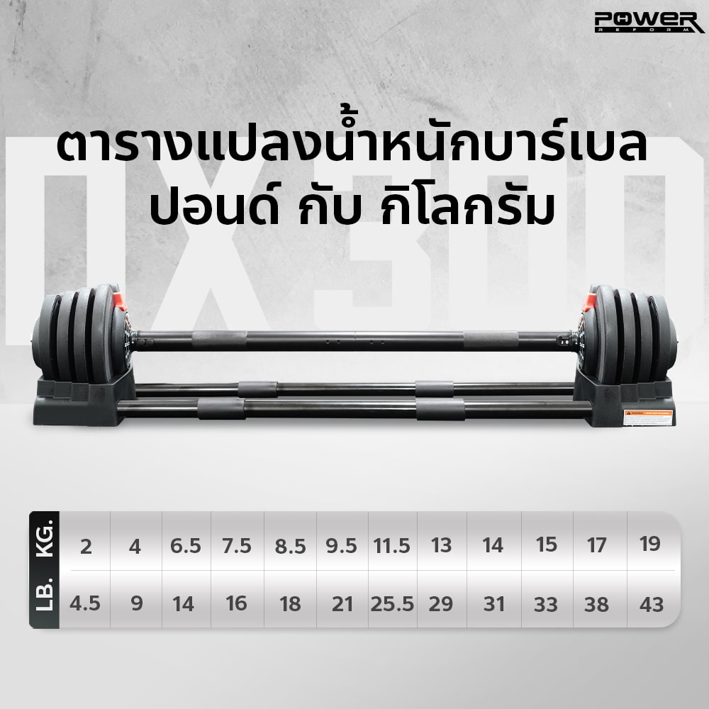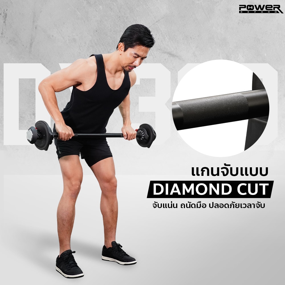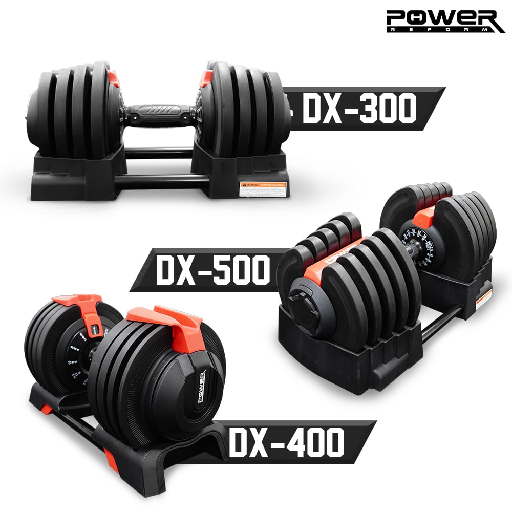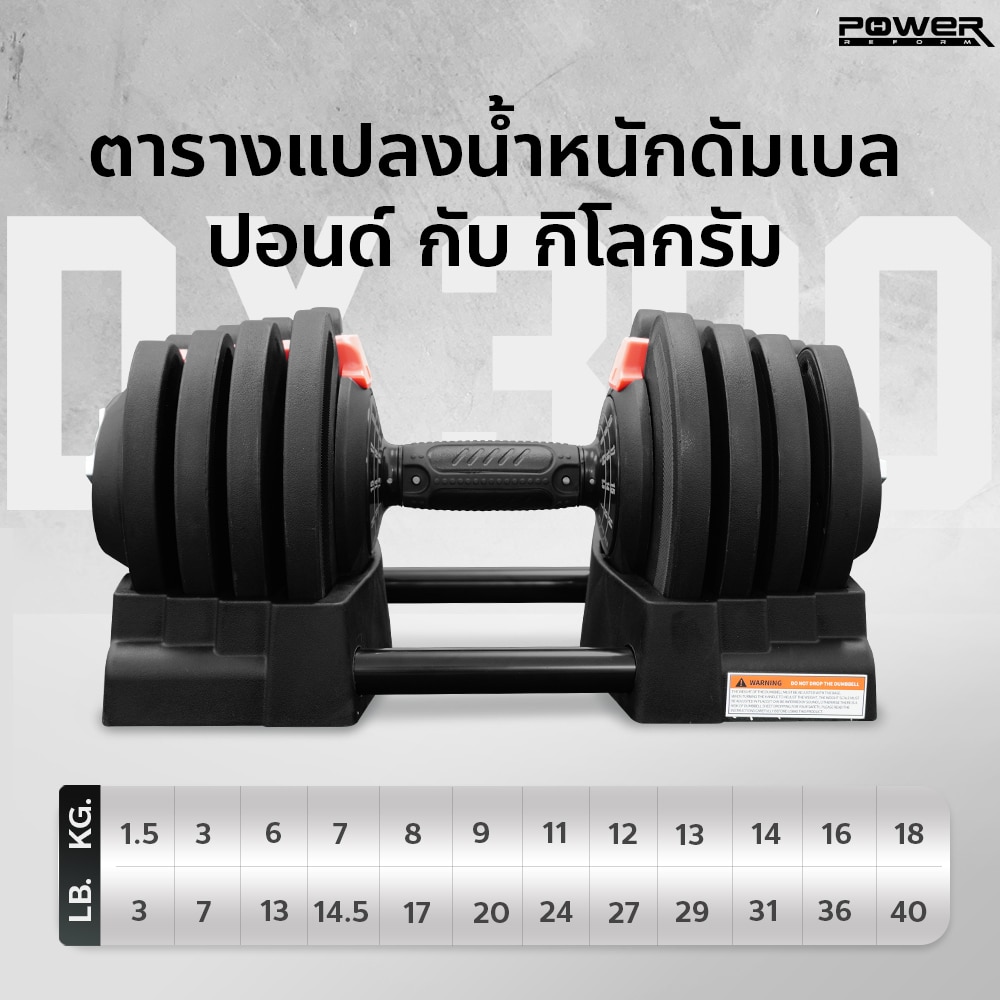 ดัมเบลปรับน้ำหนัก Evolution รุ่น DX-300/400/500 จาก Power Reform 3 in 1 ดัมเบล,บาร์เบล,เคตเทิลเบล มีแกนต่อสำหรับแปลงเป็นบาร์เบล มีด้ามจับ สำหรับแปลงเป็น kettlebell แกนจับบาร์เบลเป็น Diamond cut จับแน่นถนัดมือ แกนจับดัมเบลหุ้มยาง จับถนัดมือ ปลอดภัยเวลาจับ ผลิตจากเหล็กเคลือบด้วยพลาสติกคุณภาพสูงช่วยป้องกันสนิม ลดเสียงรบกวนขณะออกกำลังกาย ประหยัดพื้นที่มีให้เลือกถึง 3 รุ่น DX-300 ปรับน้ำหนักได้ถึง 19 กก. รวมบาร์เบล DX-400 ปรับน้ำหนักได้ถึง 24 กก. รวมบาร์เบล DX-500 ปรับน้ำหนักได้ถึง 24 กก. รวมบาร์เบล