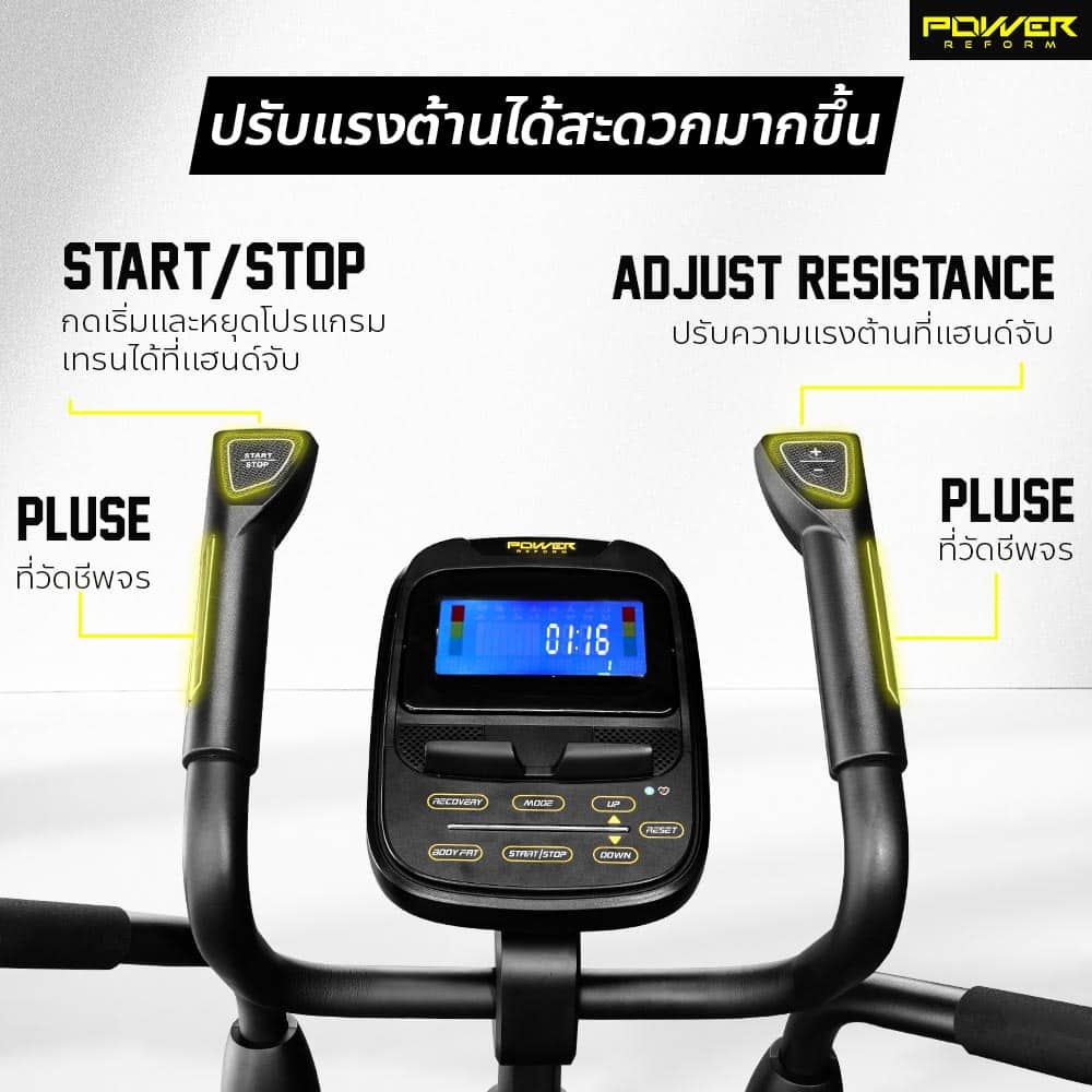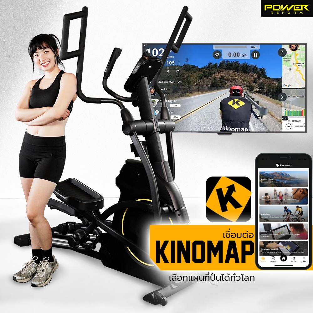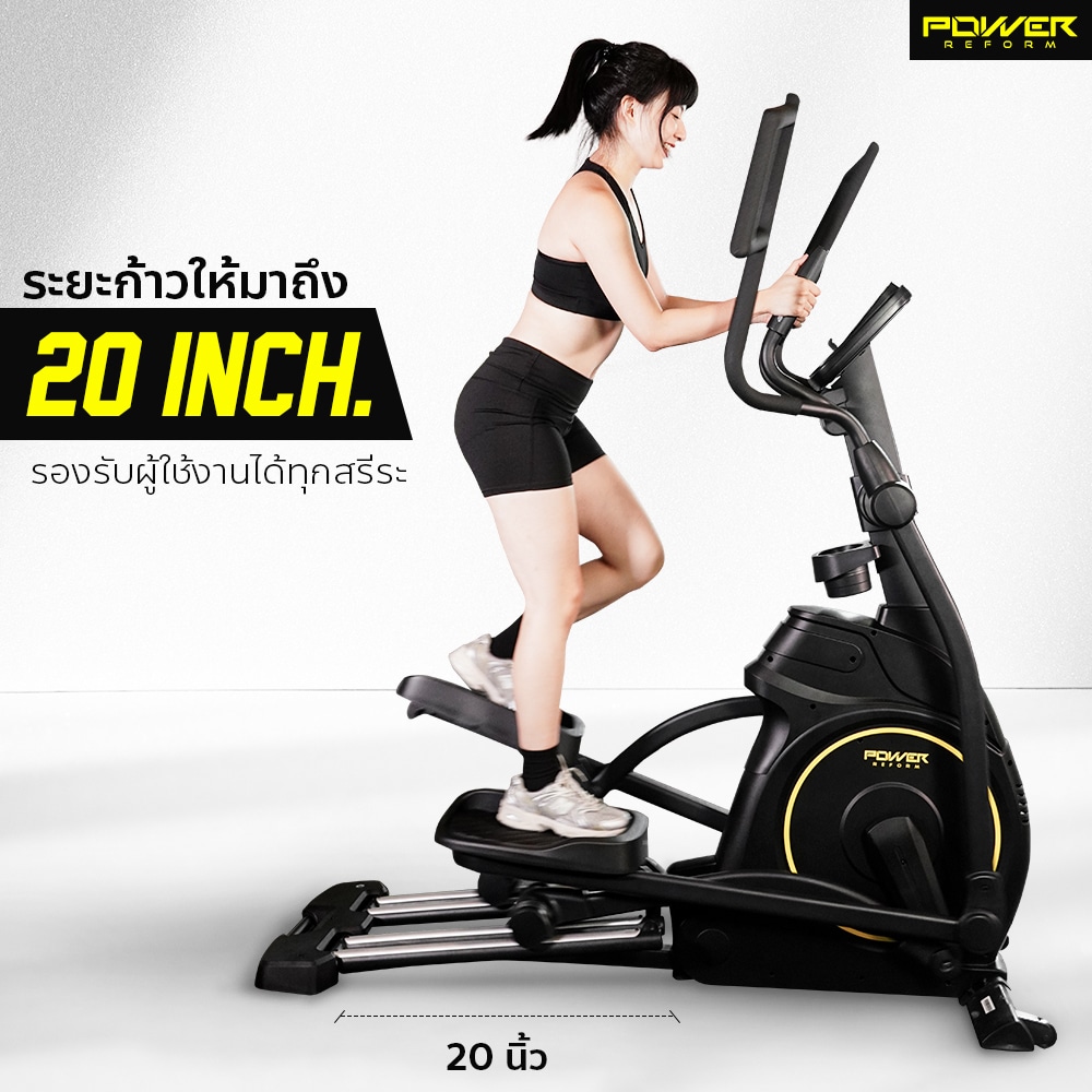 เครื่องเดินวงรี รุ่น SUPERIOR จาก POWER REFORM จานล้อหนัก 10 กก. ระยะก้าว 20 นิ้ว ระบบรางคู่ Dual Track ปรับแรงต้านได้ถึง 16 ระดับ ปรับความชันได้ 3 ระดับ หน้าจอ 6 ฟังก์ชั่น เชื่อมต่อแอพ ZWIFT และ KINOMAP ได้
