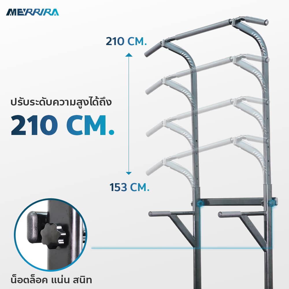 บาร์โหนตั้งพื้น รุ่น Templar Tower จาก Merrira บาร์โหนปรับระดับความสูงได้ตั้งแต่ 153 – 210 ซม. แข็งแรง ทนทาน รับน้ำหนักได้ถึง 120 กก.