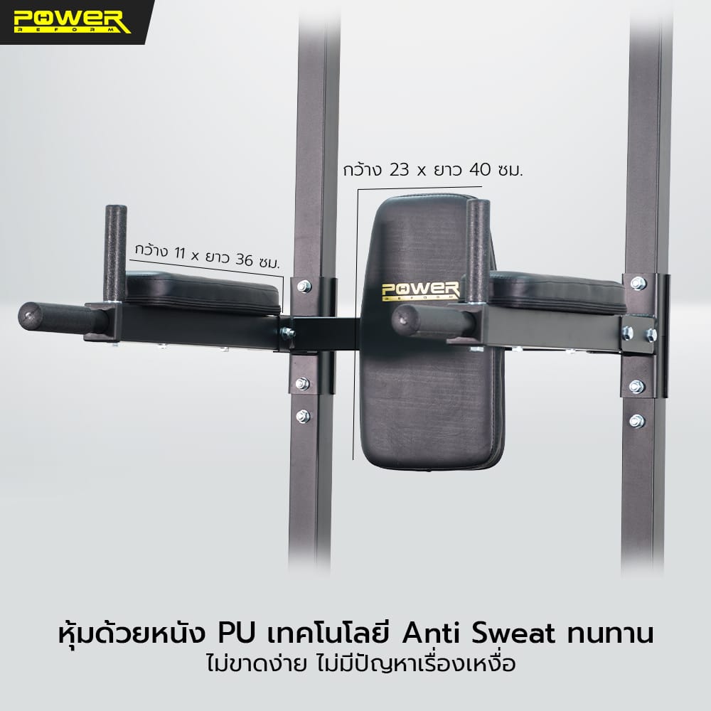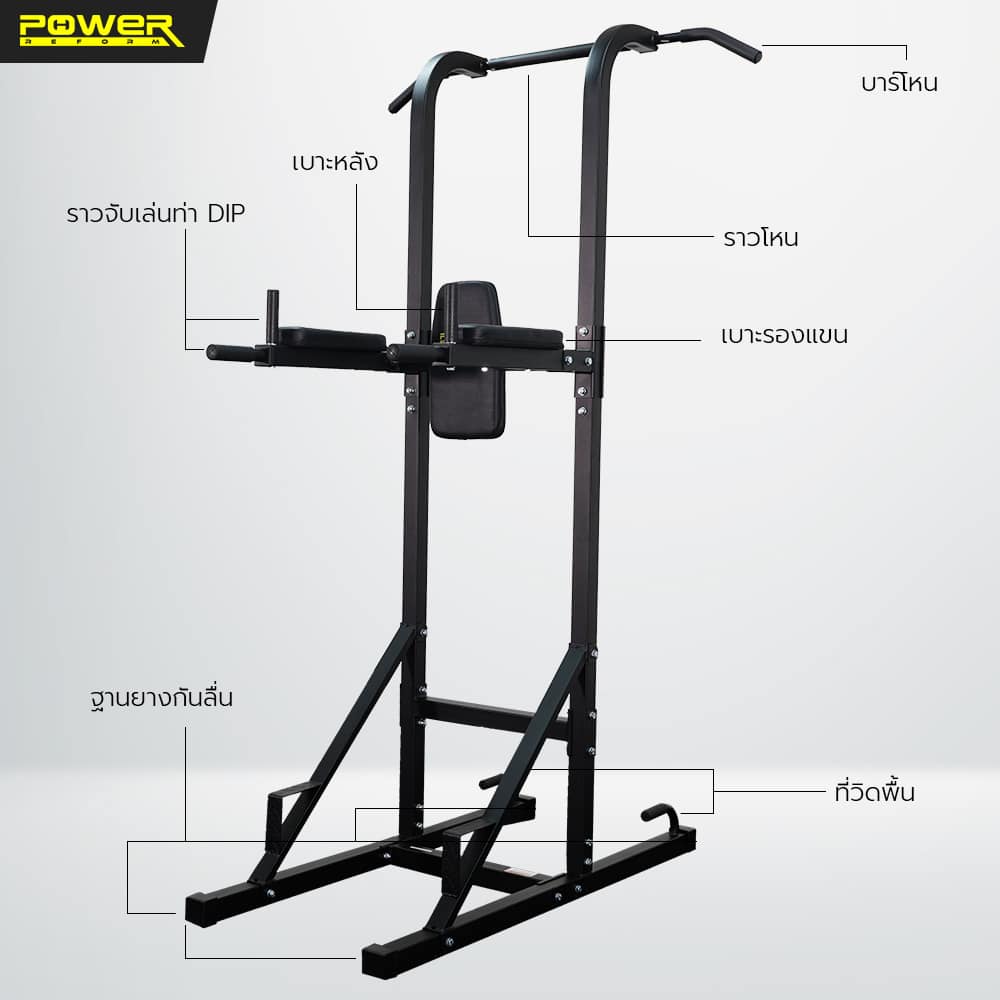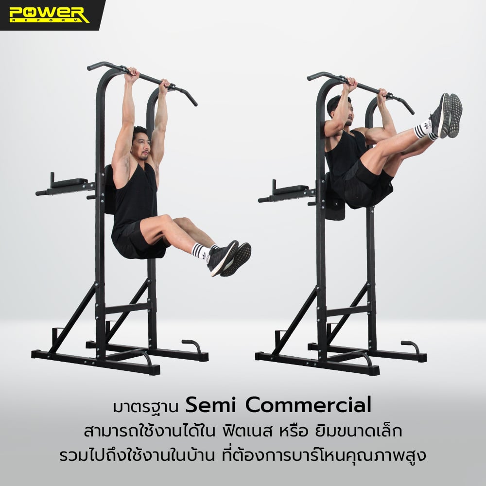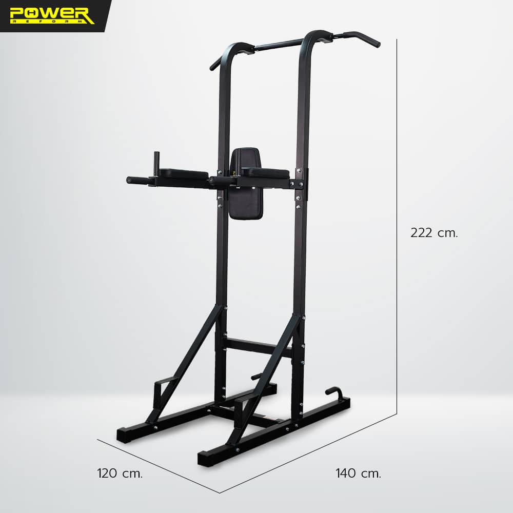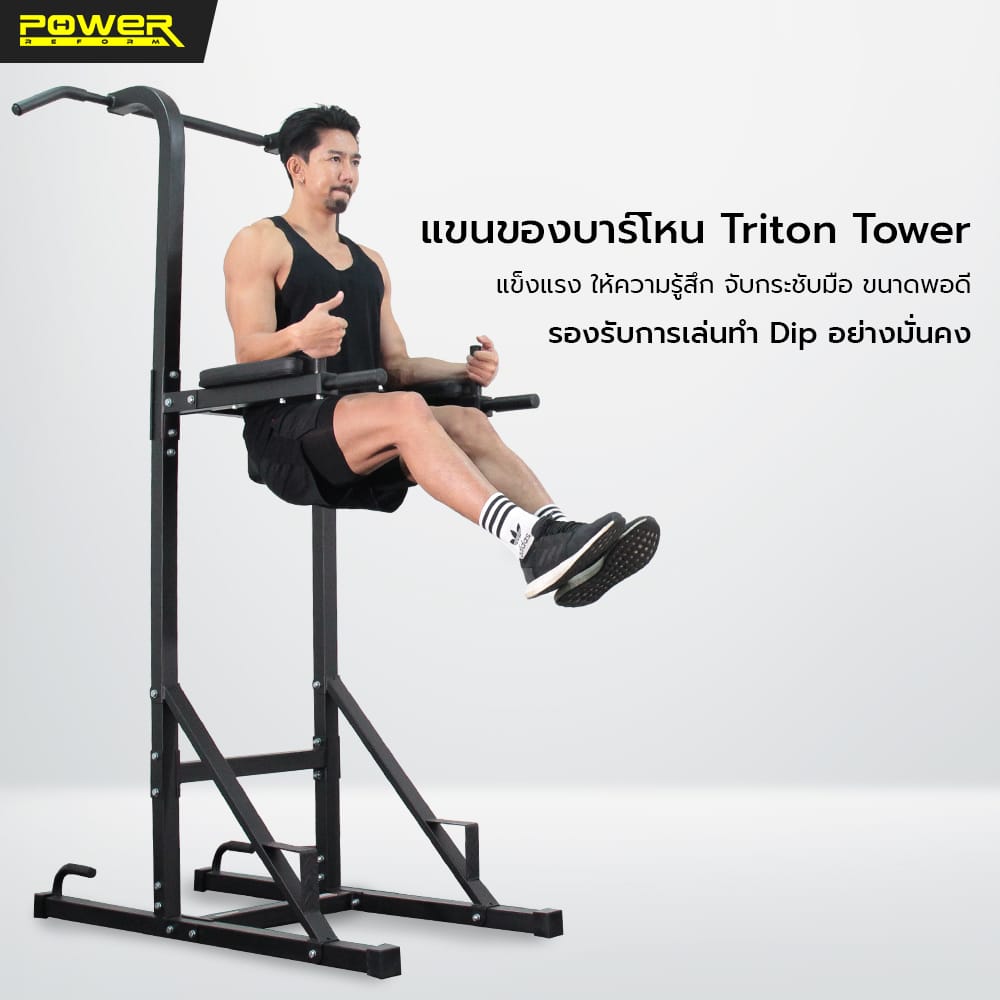 บาร์โหน รุ่น Triton Tower จาก Power Reform เหล็กหนา 2 มม. รับน้ำหนักได้ 200 กก. ขนาด 120*140*222 ซม. เคลือบ Powder Coating กันสนิม เกรด Semi Commercial รองรับการบริหาร อก ไหล่ หลัง แขน ต้นขา
