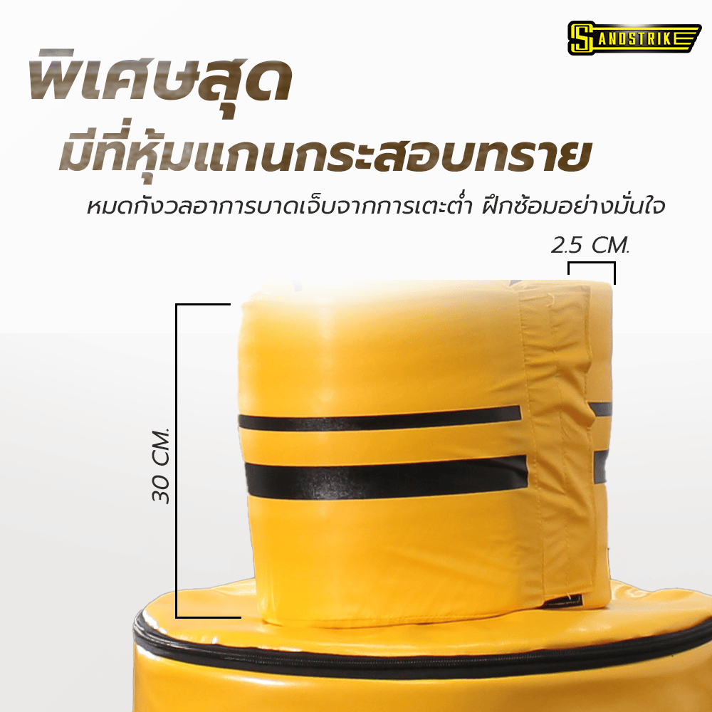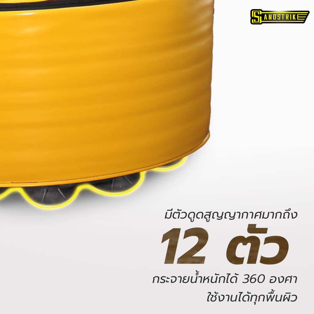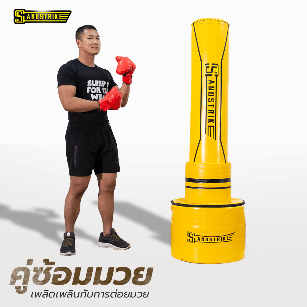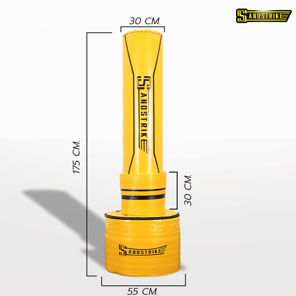 กระสอบทรายตั้งพื้น SMASHER BS-500 ผลิตจากโฟมอัดแน่น 4 ชั้น หุ้มหนัง PU ขนาด 30*175*55 ซม. มีที่หุ้มแกน ขนาด 30 ซม. หนา 2.5 ซม. ตัวดูดสูญญากาศ 12 ตัวที่ฐาน ฐานสามารถใส่น้ำหรือทรายเพื่อเพิ่มน้ำหนักได้