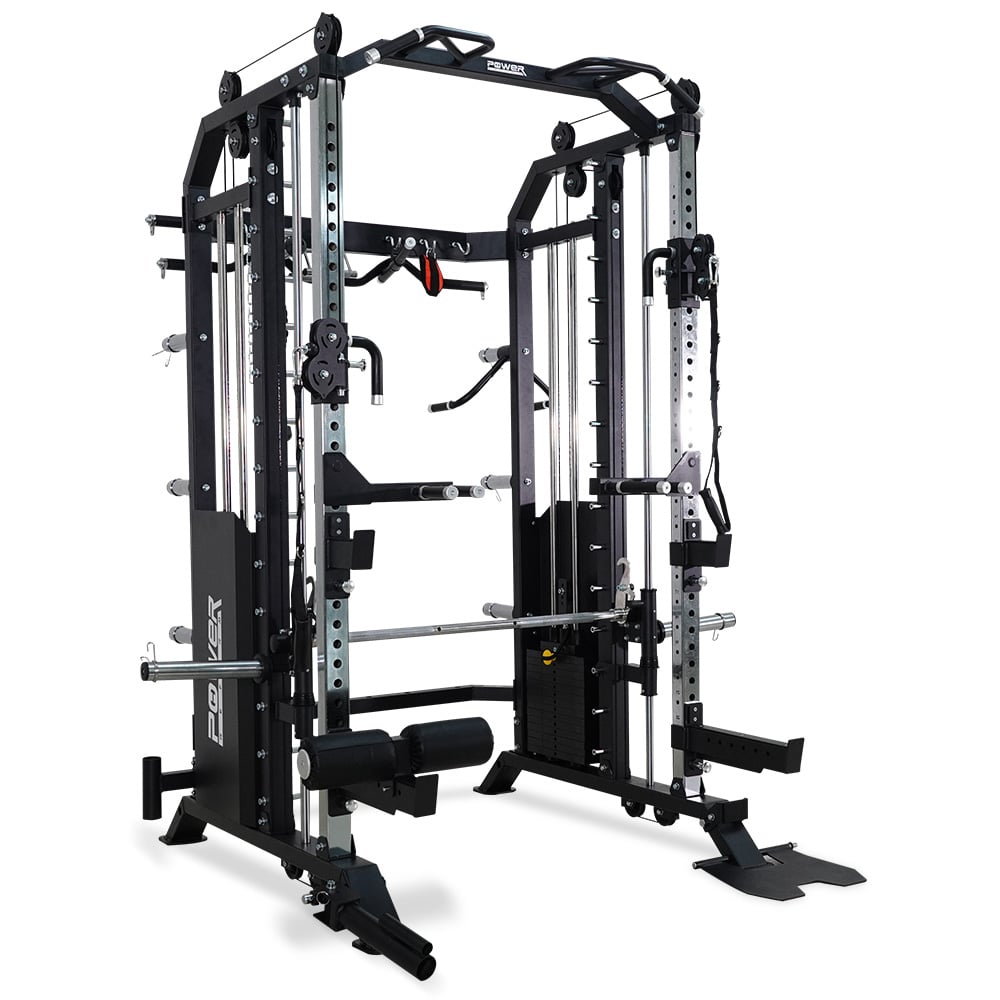 สุดยอดนวัตกรรม เครื่องออกกำลังกาย Smith Machine เกรด Commercial ใช้งานในฟิตเนส บริษัท โรงยิมได้ Mega Trainer Series รุ่น M9 จาก POWER REFORM™ ผู้นำนวัตรกรรมด้านเครื่องออกกำลังกาย เครื่องเดียวเหมือนยกเอายิมมาไว้ที่บ้าน มีน้ำหนัก Weight Stack ในตัวให้ใช้มากถึง 180 กก. เป็นทั้ง Smith Machine, Power Rack, Crossover, Row Machine, Leg Press, Lat Pull Down, Dip Station, Core Trainer, Weight Storage และอื่นๆ พร้อมอุปกรณ์เสริมในชุด 15 รายการ และสามารถซื้ออุปกรณ์เสริมเพิ่มได้ในราคาพิเศษ