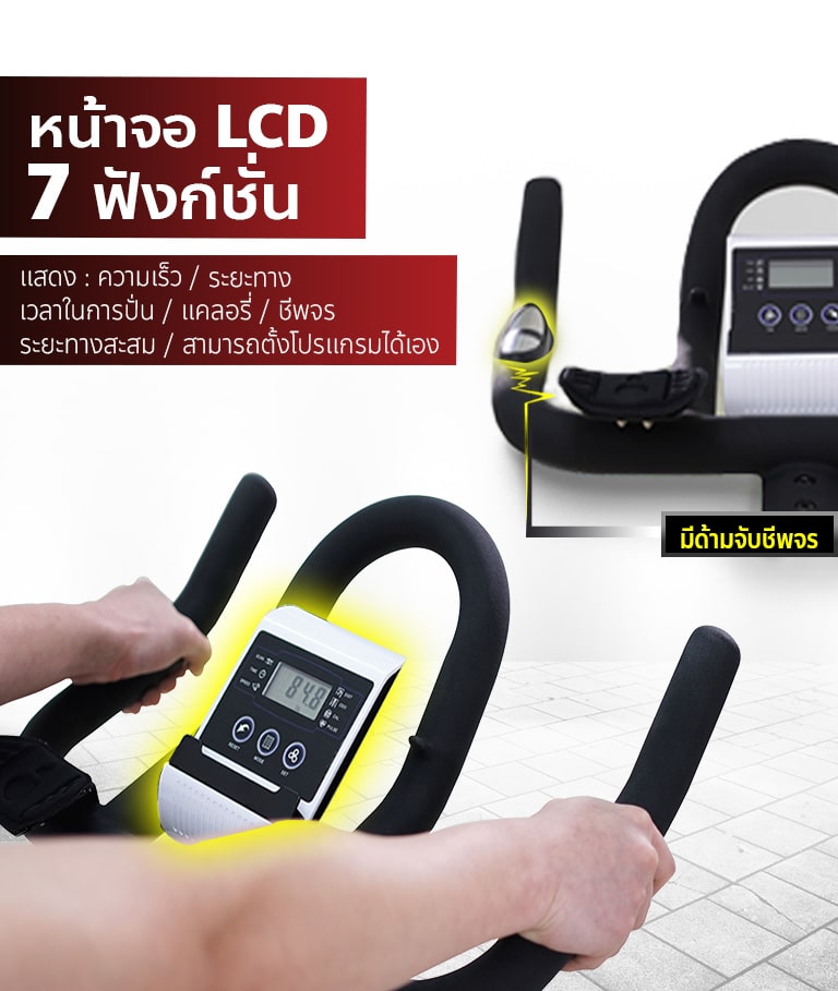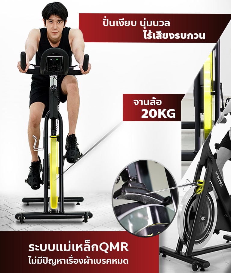 จักรยาน Spin Bike รุ่น GRIFFIN จาก POWER REFORM™ ขับเคลื่อนด้วยระบบสายพาน สร้างแรงต้านด้วยระบบแม่เหล็ก Magnetic QMR เงียบ ไม่มีการเสียดสี จานล้อ Flywheel ขนาด 20 กก. หน้าจอ 7 ฟังก์ชั่น พร้อม วัดชีพจร