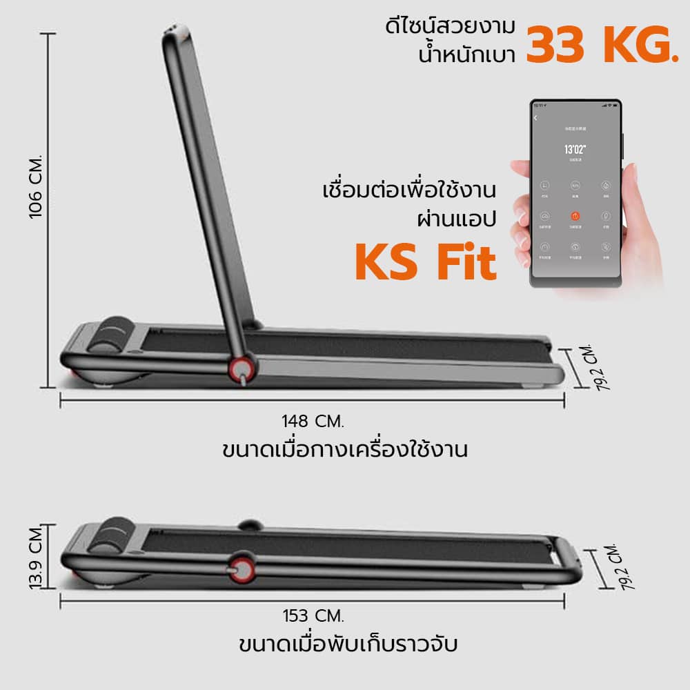 ลู่วิ่งไฟฟ้า รุ่น Kingsmith F1 จาก Xiaomi™ และ Time to Fitness ผู้แทนจำหน่ายอย่างเป็นทางการของ Xiaomi Youpin มอเตอร์ High Torque 1.0 HP พื้นที่วิ่ง กว้าง 48 ซม. x ยาว 120 ซม. ความเร็วสูงสุด 12 กม./ชม. ลู่วิ่งไฟฟ้า 2 in 1 เดินและวิ่งในเครื่องเดียว โหมดเดิน รับน้ำหนักได้ 120 กก. โหมดวิ่ง รับน้ำหนักได้ 100 กก. พับเก็บได้มีล้อเลื่อน ควบคุมการทำงานด้วยรีโมท และ มือถือ เป็น Global Version ปลั๊กไทย ไฟไทย คู่มือภาษาอังกฤษ เชื่อมต่อ KS Fit ได้