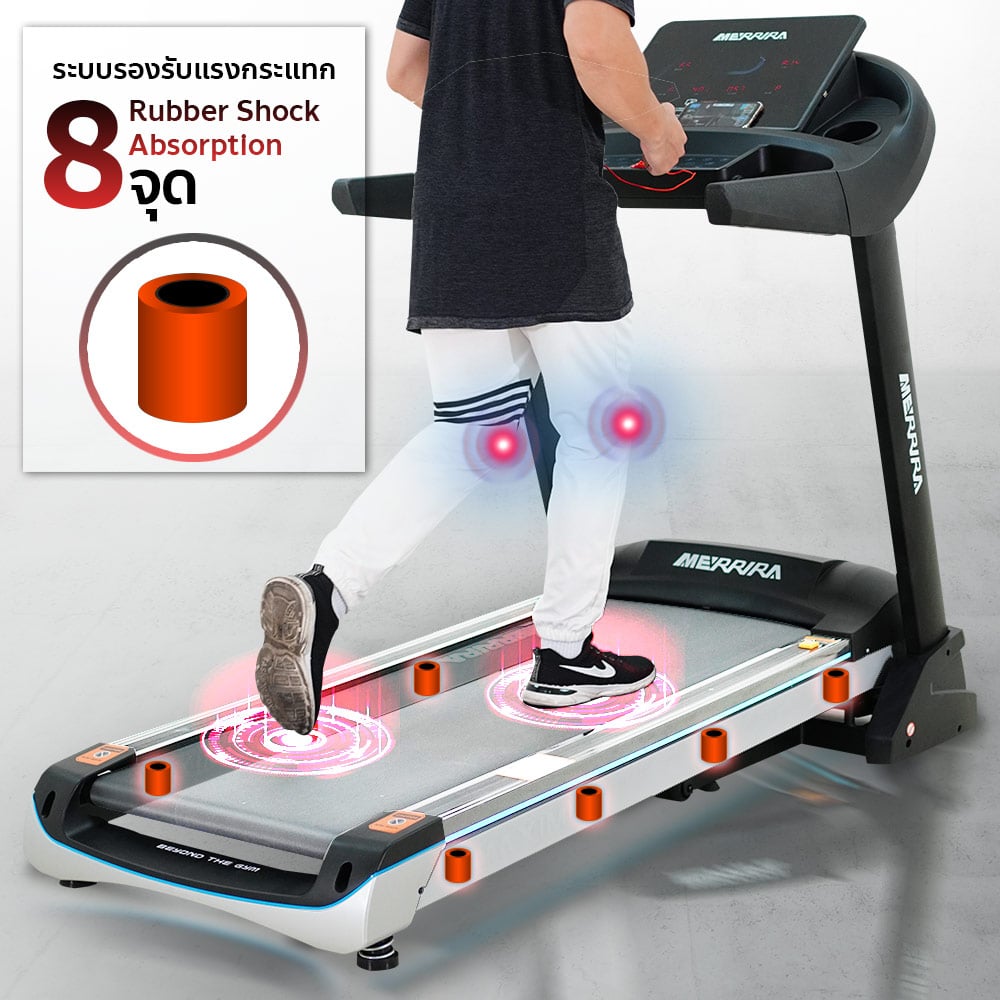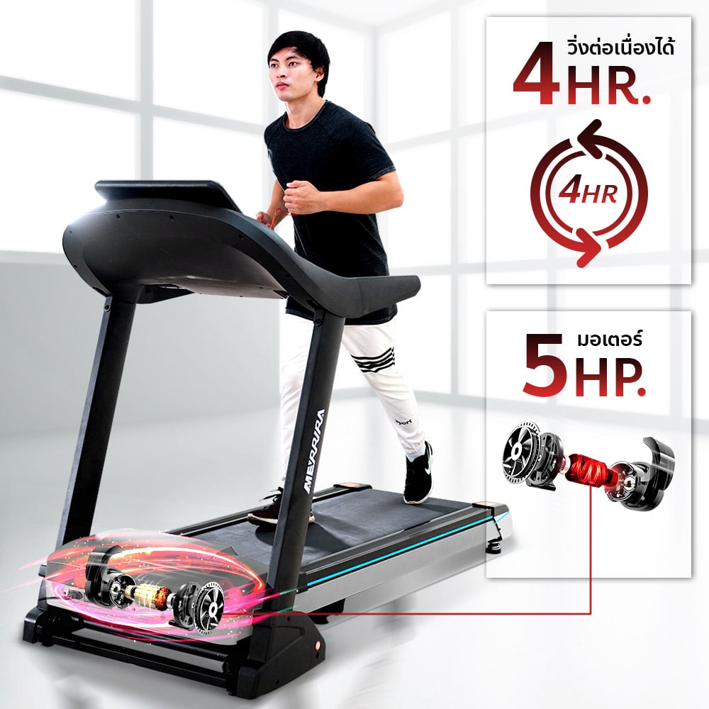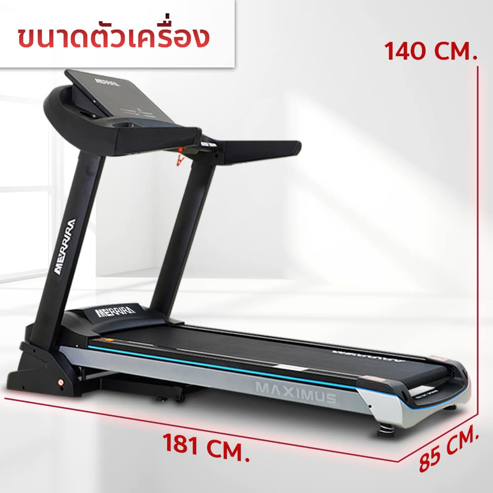 ลู่วิ่งไฟฟ้า รุ่น MAXIMUS จาก MERRIRA™ มอเตอร์ 5 HP พื้นที่วิ่ง กว้าง 52 ซม. x ยาว 136 ซม. ความเร็วสูงสุด 20 กม./ชม. ปรับความชันอัตโนมัติ 20 ระดับ Auto-Incline รับน้ำหนักได้สูงสุด 150 กิโลกรัม วิ่งติดต่อกันได้ 8 ชม. สามารถเชื่อมต่อ ZWIFT ได้ทันที ระบบรองรับแรงกระแทก Rubber Shock Absorption 8 จุด ลดแรงกระแทกที่ เข่า และ ข้อเท้า เป็นอย่างดี **หลังใช้งาน 1 ชั่วโมง ให้พักเครื่อง 10-15 นาที ก่อนเพื่อยืดอายุการใช้งาน**