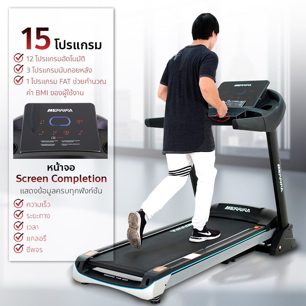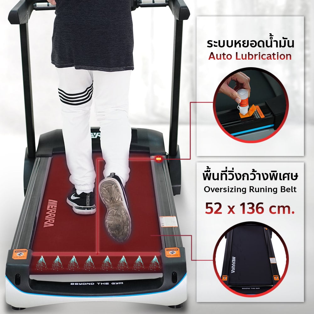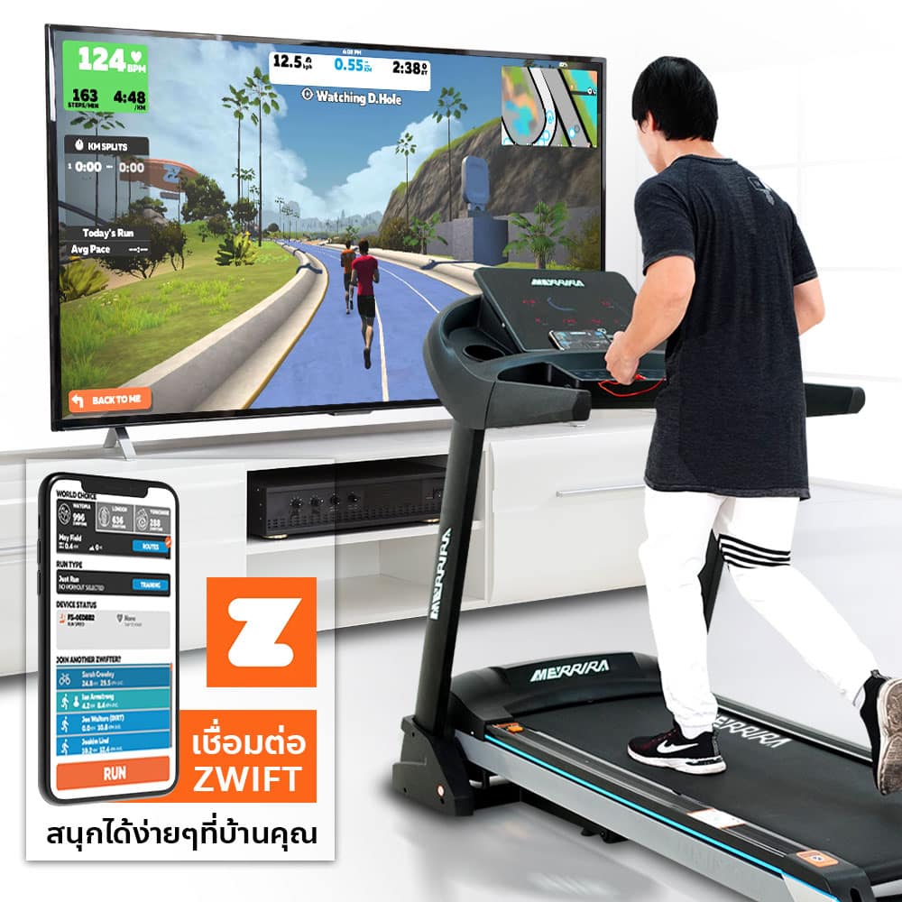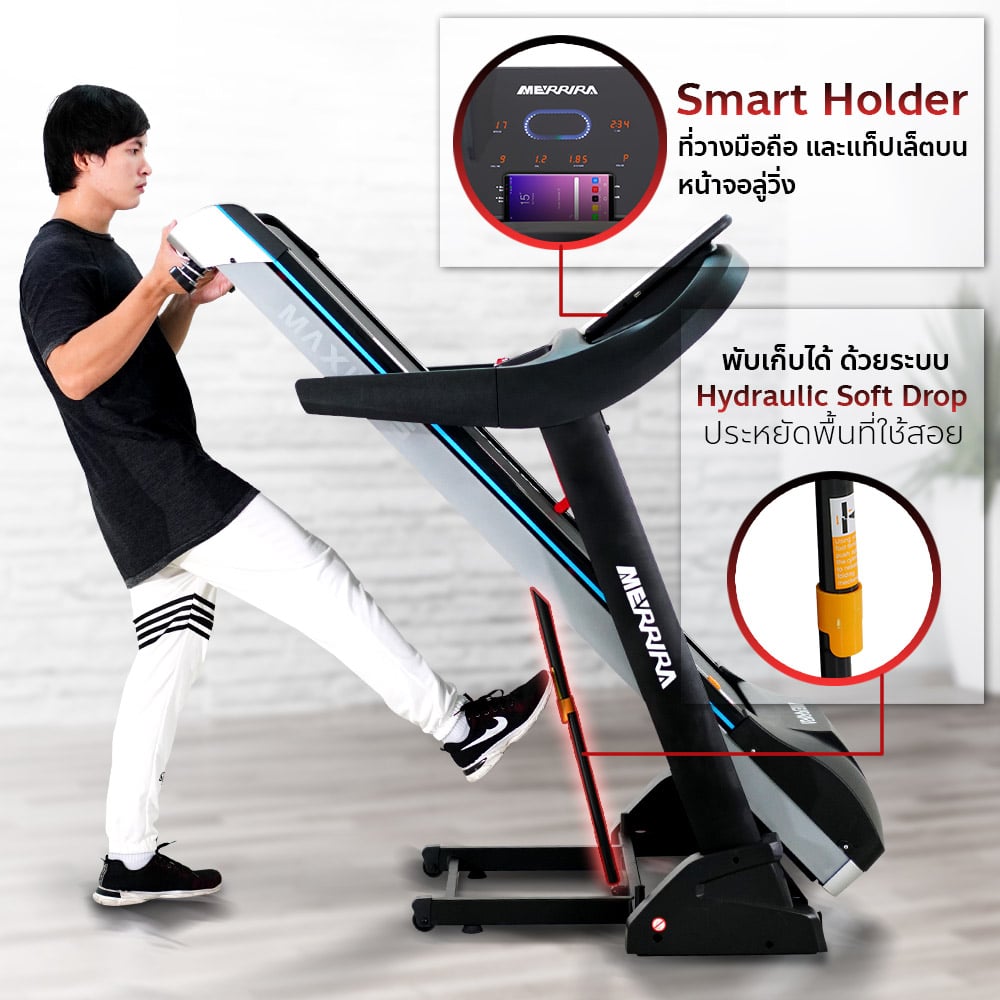 ลู่วิ่งไฟฟ้า รุ่น MAXIMUS จาก MERRIRA™ มอเตอร์ 5 HP พื้นที่วิ่ง กว้าง 52 ซม. x ยาว 136 ซม. ความเร็วสูงสุด 20 กม./ชม. ปรับความชันอัตโนมัติ 20 ระดับ Auto-Incline รับน้ำหนักได้สูงสุด 150 กิโลกรัม วิ่งติดต่อกันได้ 8 ชม. สามารถเชื่อมต่อ ZWIFT ได้ทันที ระบบรองรับแรงกระแทก Rubber Shock Absorption 8 จุด ลดแรงกระแทกที่ เข่า และ ข้อเท้า เป็นอย่างดี **หลังใช้งาน 1 ชั่วโมง ให้พักเครื่อง 10-15 นาที ก่อนเพื่อยืดอายุการใช้งาน**