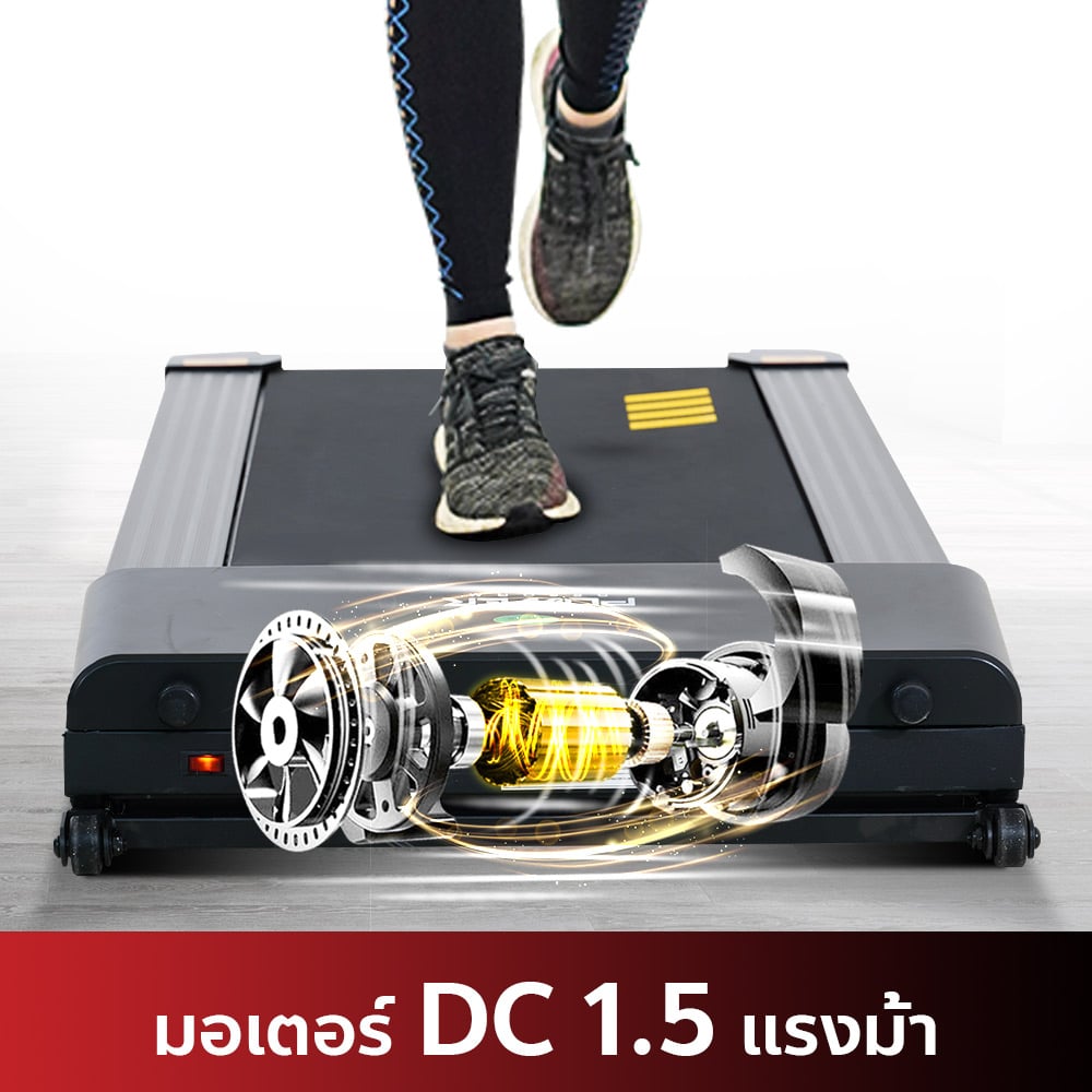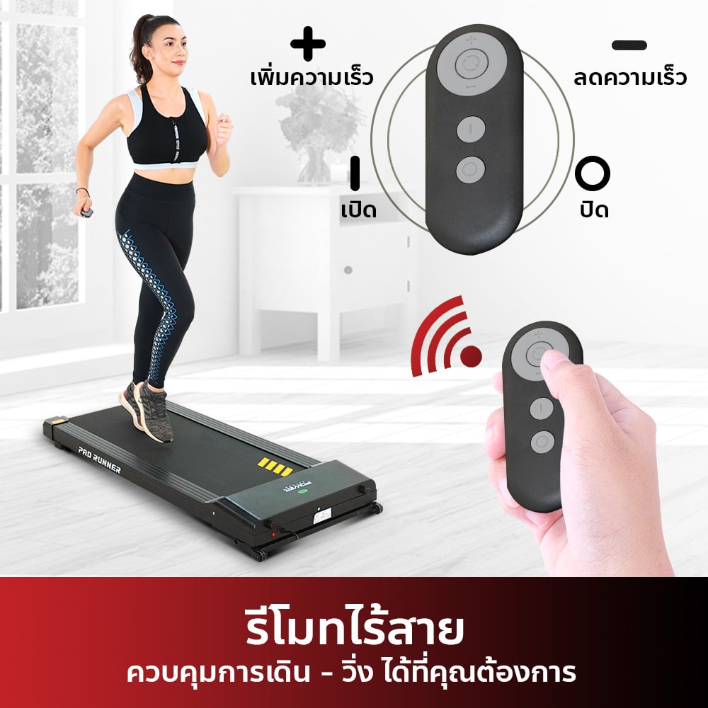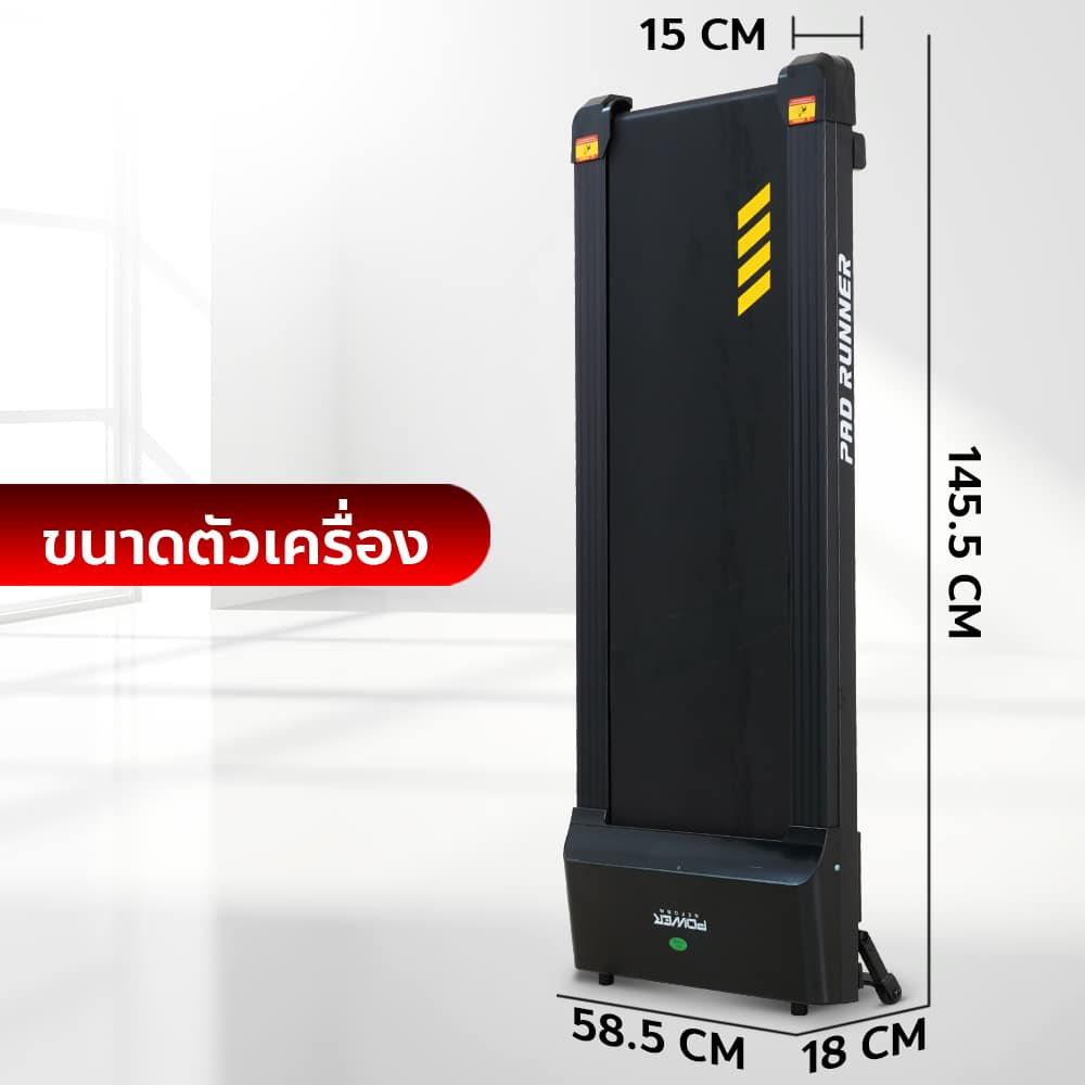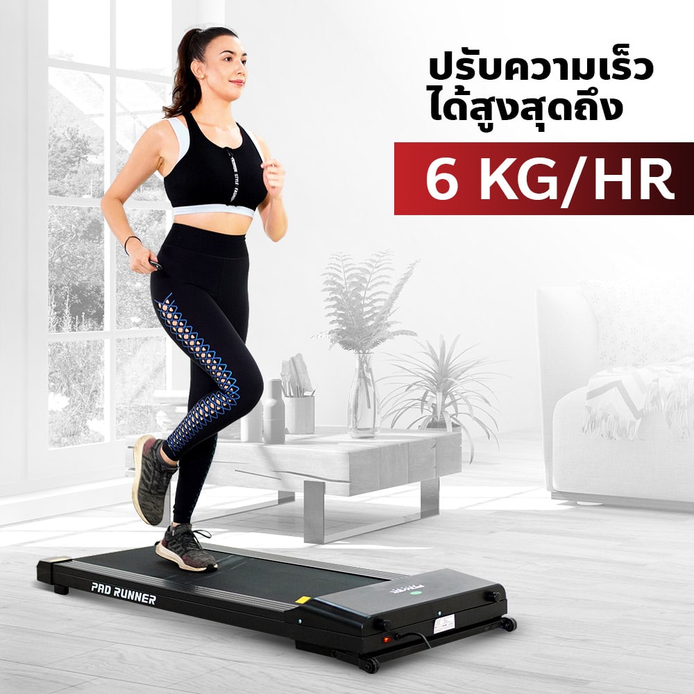 ลู่วิ่งไฟฟ้า รุ่น PAD RUNNER จาก POWER REFORM™ มอเตอร์ DC 1.5 แรงม้า พื้นที่วิ่ง กว้าง 41 ซม. x ยาว 115 ซม. ความเร็วสูงสุด 6 กม./ชม. รับน้ำหนัก 100 กก. พับเก็บแนวตั้ง 90 ํ ประหยัดพื้นที่ใช้สอย **หลังใช้งาน 1 ชั่วโมง ให้พักเครื่อง 10-15 นาที ก่อนเพื่อยืดอายุการใช้งาน**