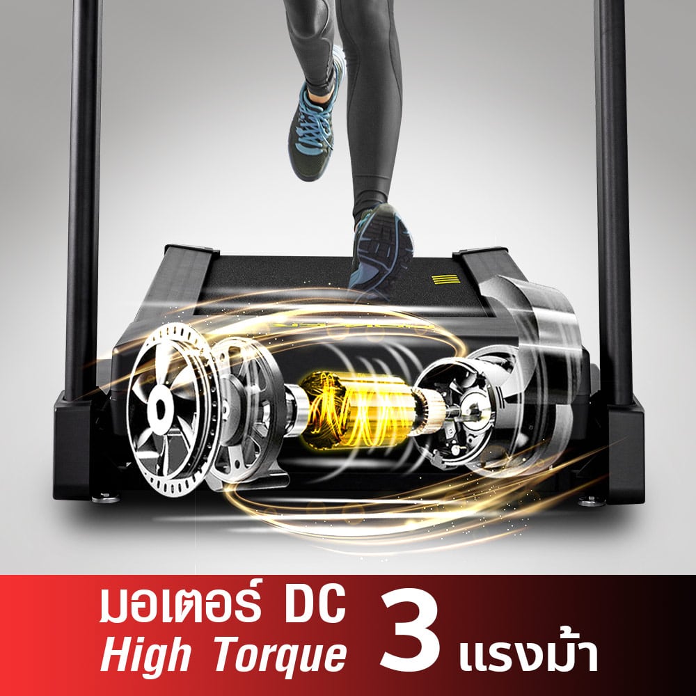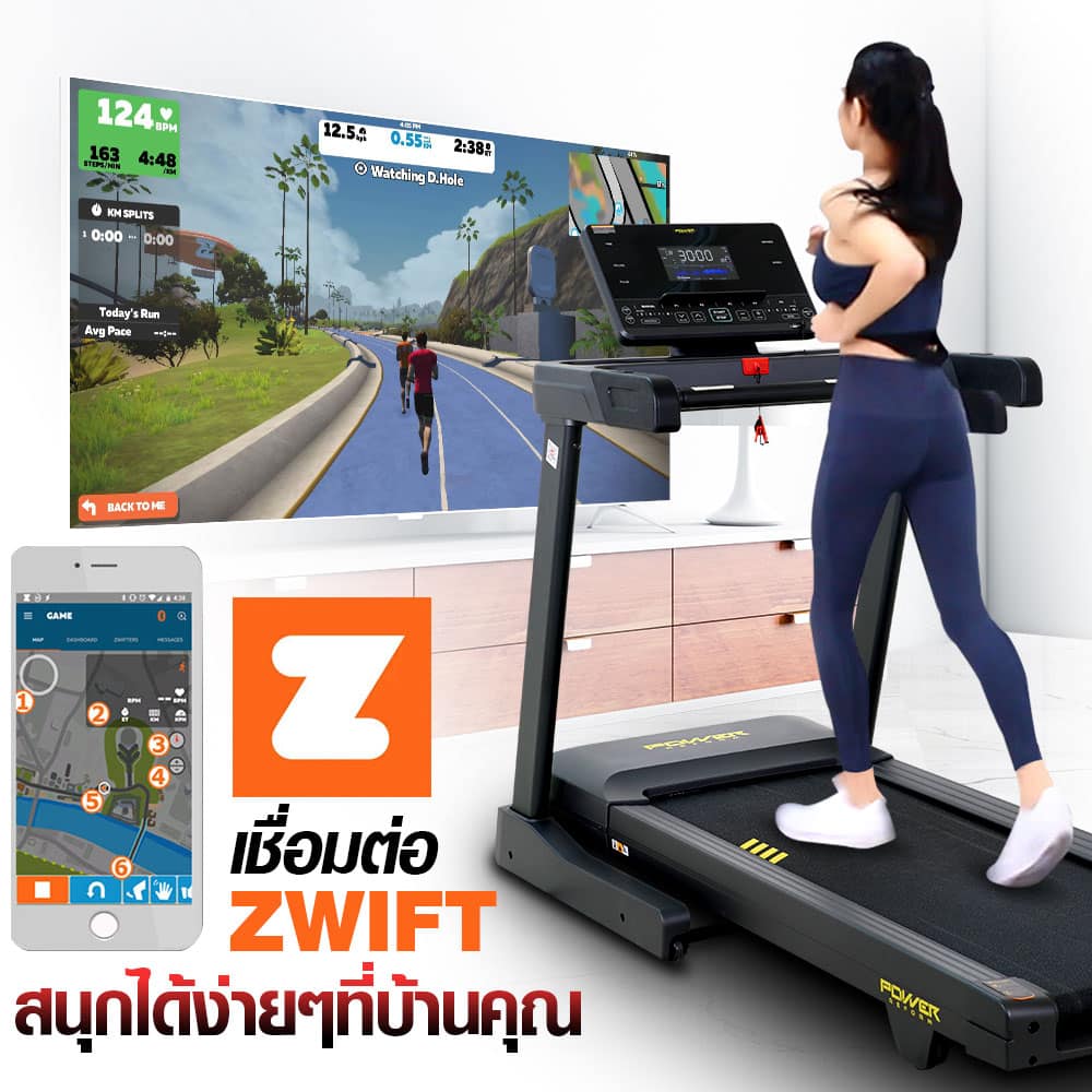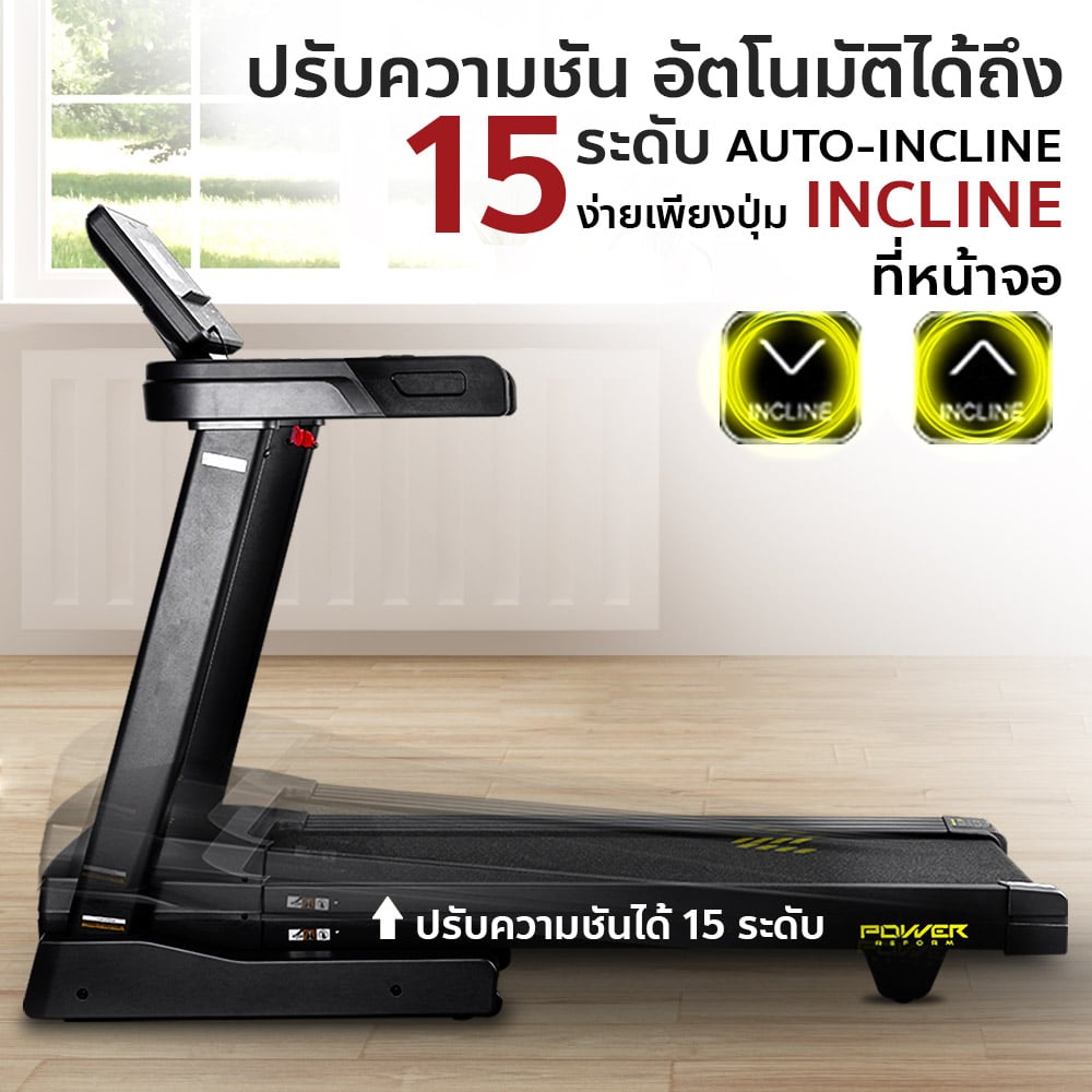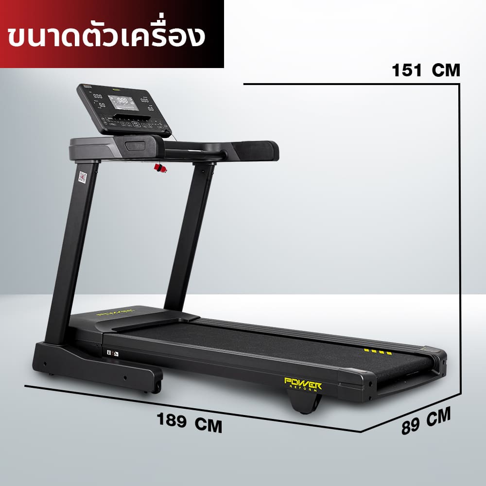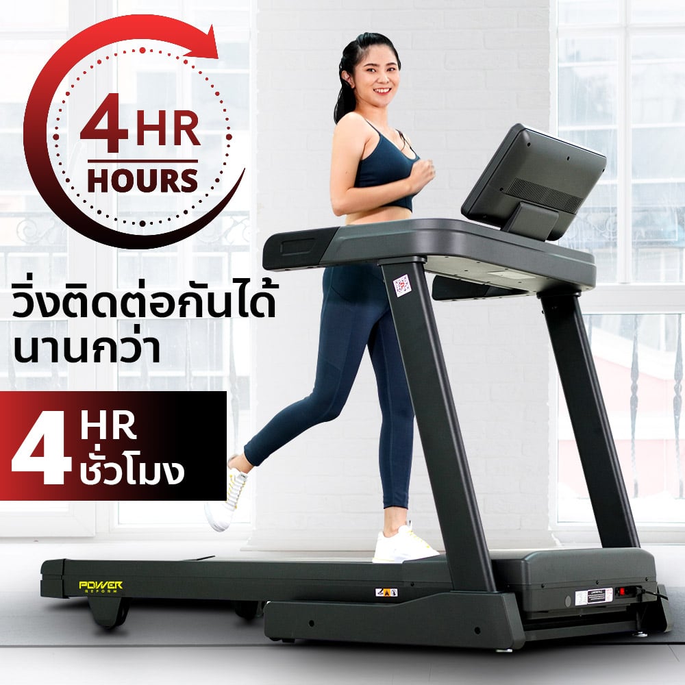 ลู่วิ่งไฟฟ้า รุ่น PANZER จาก POWER REFORM™ มอเตอร์กำลังสูง 3.0 HP High Torque พื้นที่วิ่ง กว้าง 51 ซม. x ยาว 140 ซม. ปรับความชันอัตโนมัติ 15 ระดับ Auto-Incline เชื่อมต่อ ZWIFT และ Kinomap ได้ เชื่อมต่อสายคาดอกวัดชีพจร มาตราฐาน GYMLINK ได้ สามารถหยุดวิ่งชั่วคราวได้ ระบบรองรับแรงกระแทก Patented Spring Suspension ออกแบบโปรแกรมวิ่งได้เอง พร้อมหน้าจอ Screen Completion แสดงข้อมูลทั้งหมด ในหน้าเดียว ไม่ต้องสลับไปมา **หลังใช้งาน 1 ชั่วโมง ให้พักเครื่อง 10-15 นาที ก่อนเพื่อยืดอายุการใช้งาน**