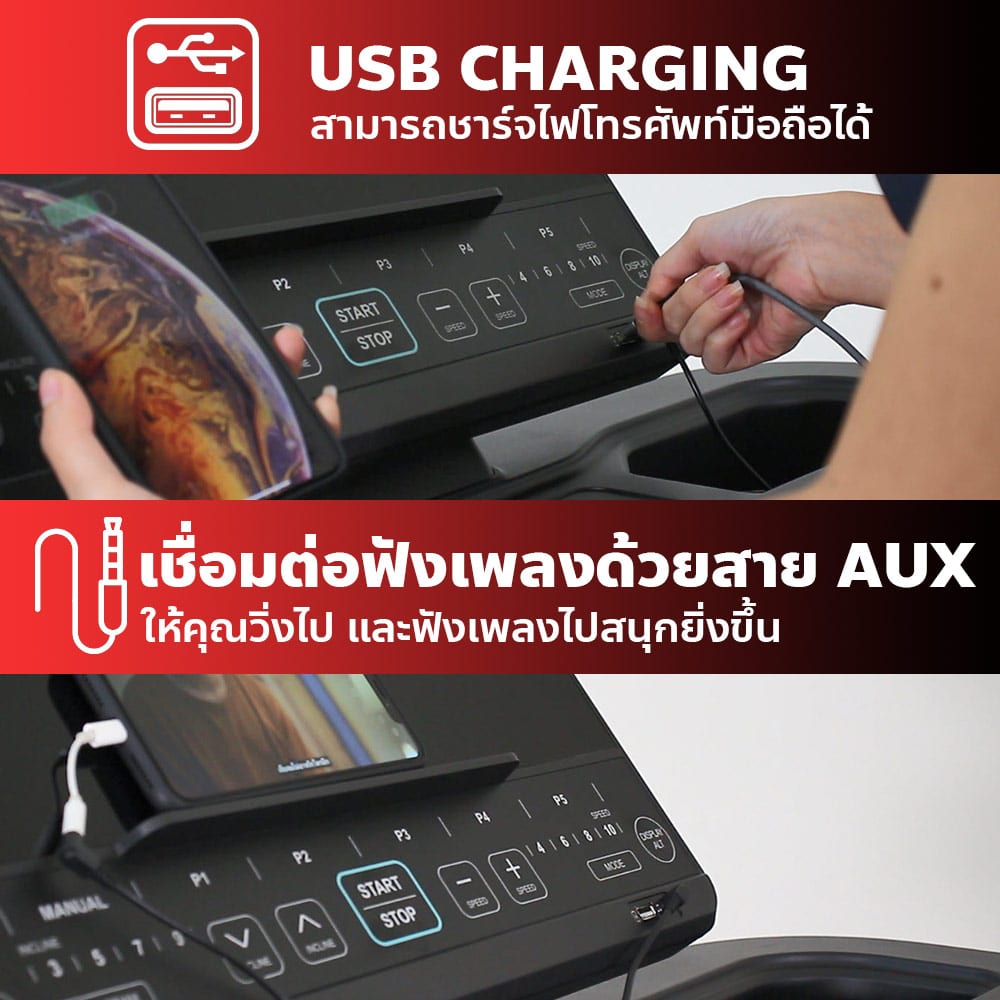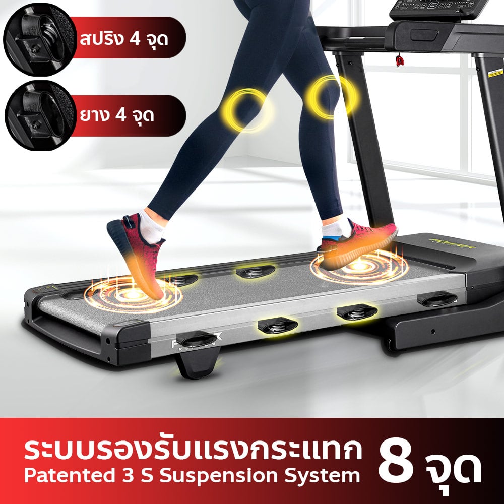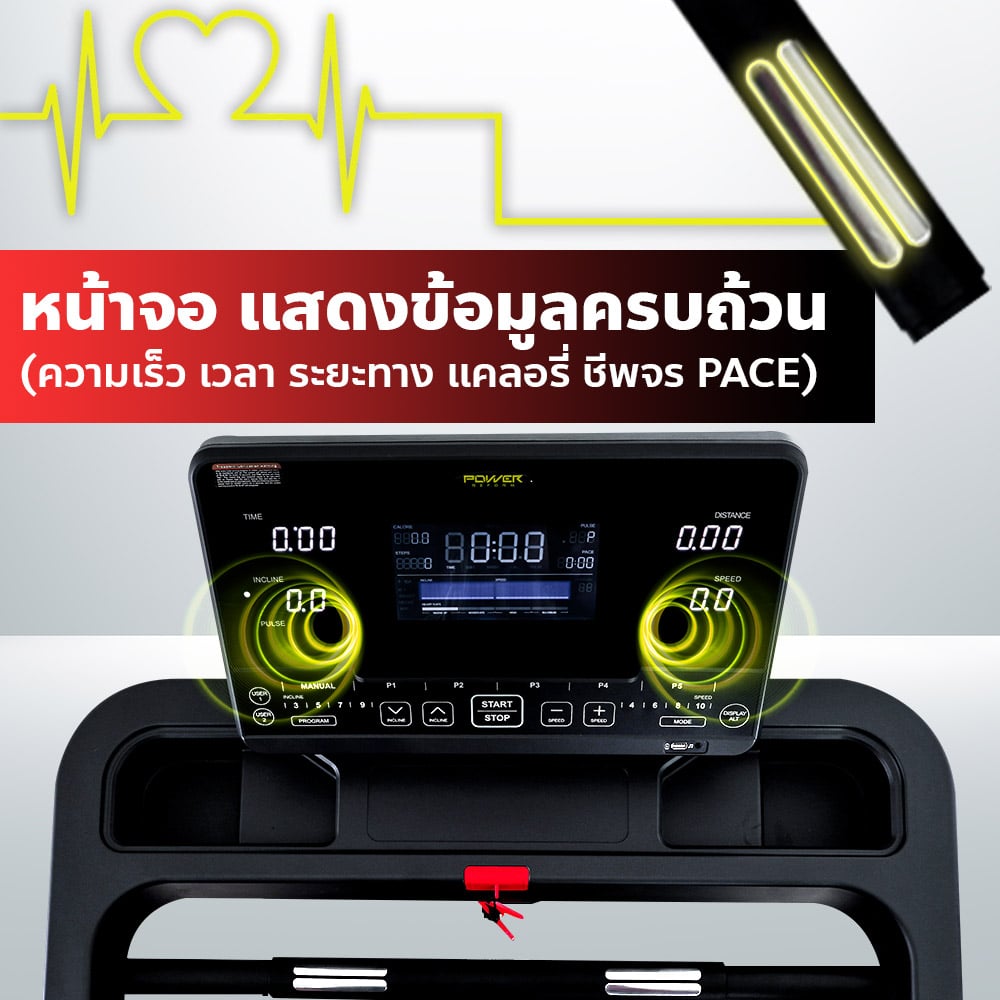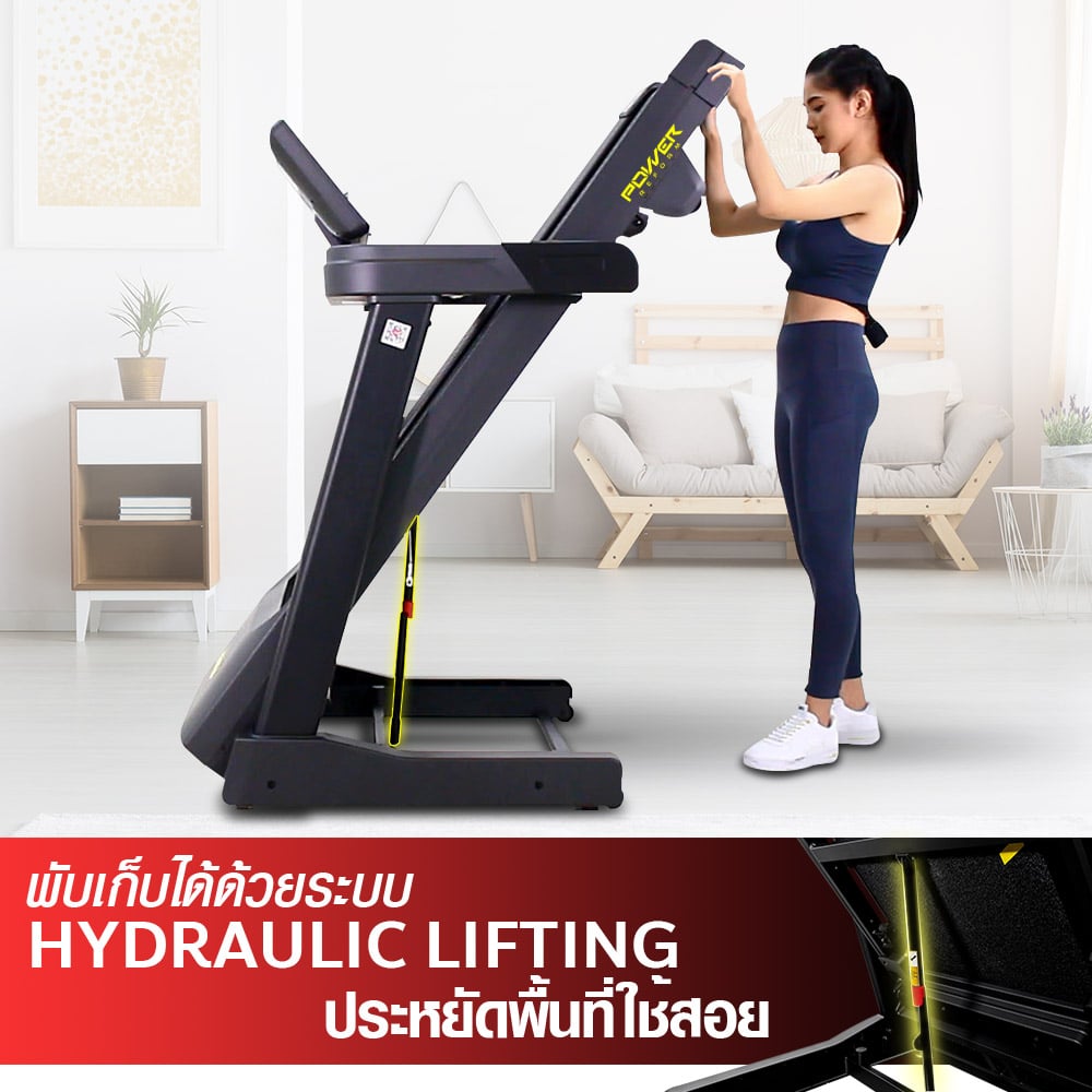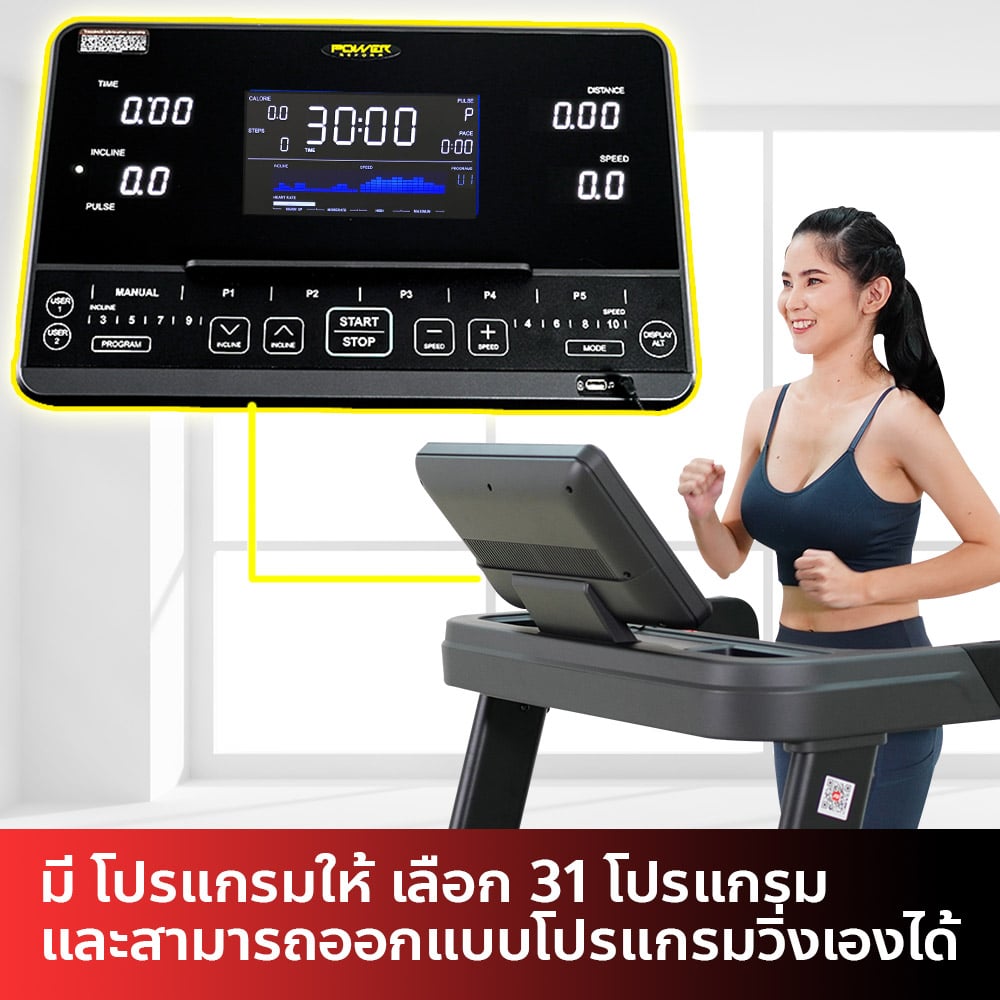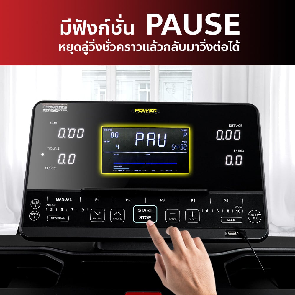 ลู่วิ่งไฟฟ้า รุ่น PANZER จาก POWER REFORM™ มอเตอร์กำลังสูง 3.0 HP High Torque พื้นที่วิ่ง กว้าง 51 ซม. x ยาว 140 ซม. ปรับความชันอัตโนมัติ 15 ระดับ Auto-Incline เชื่อมต่อ ZWIFT และ Kinomap ได้ เชื่อมต่อสายคาดอกวัดชีพจร มาตราฐาน GYMLINK ได้ สามารถหยุดวิ่งชั่วคราวได้ ระบบรองรับแรงกระแทก Patented Spring Suspension ออกแบบโปรแกรมวิ่งได้เอง พร้อมหน้าจอ Screen Completion แสดงข้อมูลทั้งหมด ในหน้าเดียว ไม่ต้องสลับไปมา **หลังใช้งาน 1 ชั่วโมง ให้พักเครื่อง 10-15 นาที ก่อนเพื่อยืดอายุการใช้งาน**