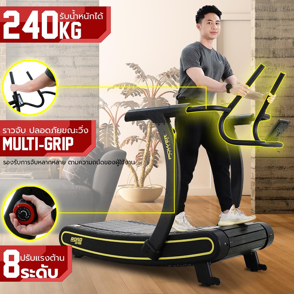 ลู่วิ่ง NON-MOTOR ROAD RUNNER RX-500™ จาก POWER REFORM ลู่วิ่งไร้มอเตอร์ ขนาดสายพาน 52 x 165 ซม. ปรับแรงต้าน 8 ระดับ ระบบลูกปืน HIGH SPEED BEARING ลื่นไหล ไม่สะดุด และเงียบเป็นพิเศษ หน้าจอ LCD Screen Completion แสดงข้อมูลทั้งหมด ในหน้าเดียว ไม่ต้องสลับไปมา โปรแกรมวิ่ง 7 โปรแกรม เชื่อมต่อ ZWIFT ได้ เชื่อมต่อสายคาดอกวัดชีพจร มาตราฐาน GYMLINK ได้ รับน้ำหนักได้สูงสุด 240 กก.