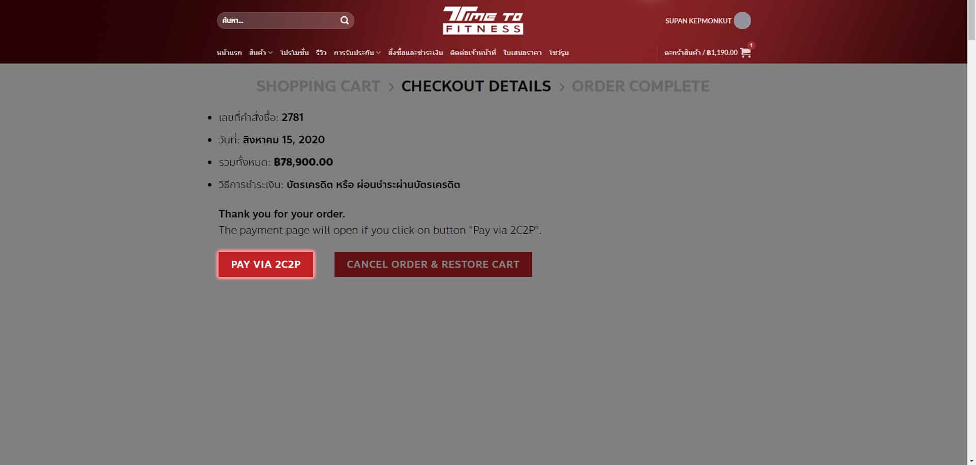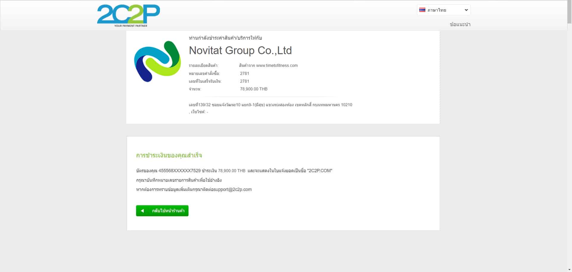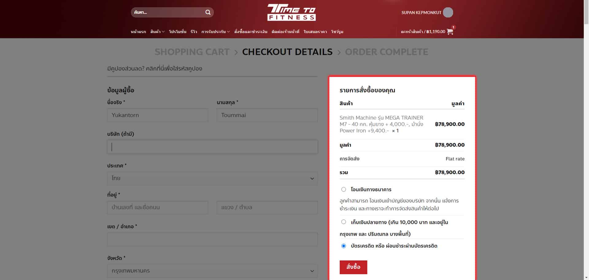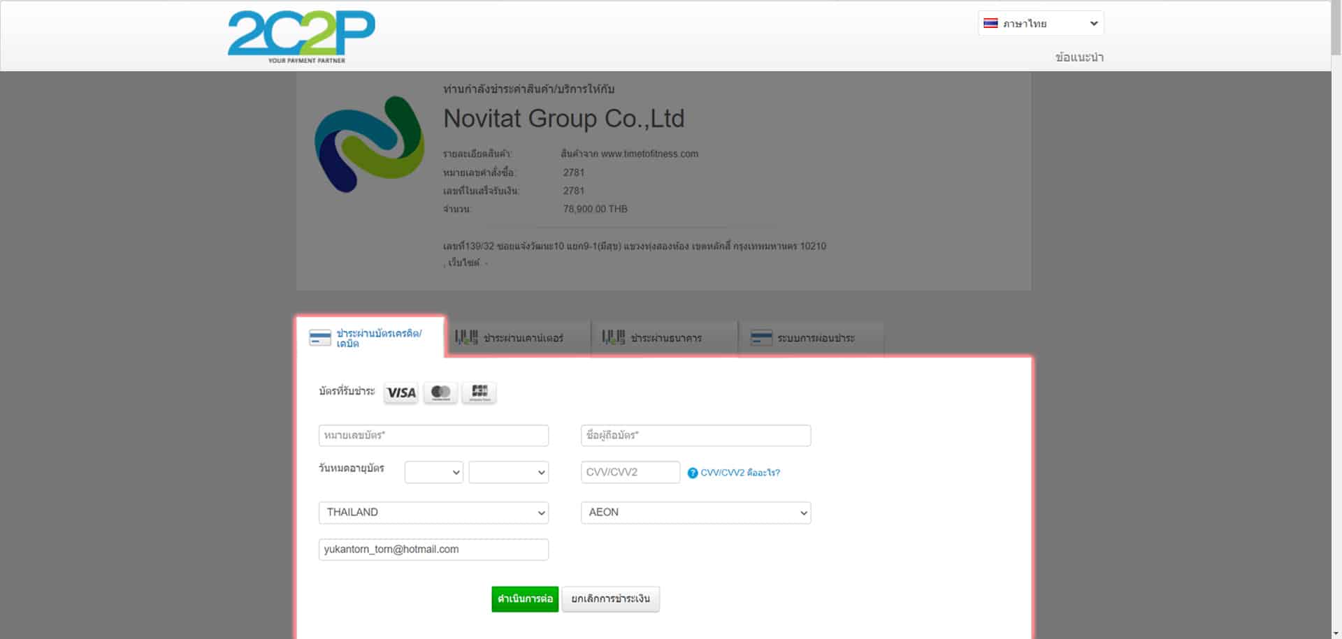 Time To Fitness มีบริการชำระเงินผ่านบัตรเครดิต โดยลูกค้าสามารถกดสั่งซื้อสินค้าทางเว็บไซต์ และ เลือกการชำระเงินผ่านบัตรเครดิตตามต้องการ