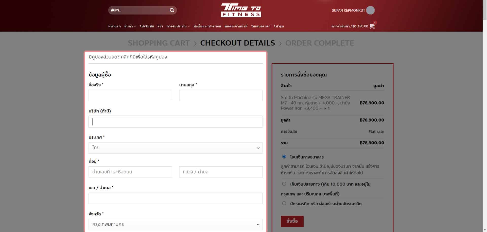 3. กรอกข้อมูลการจัดส่งให้ครบถ้วน